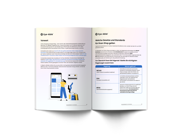 Unser kostenloses eBook "Barrierefreiheit im E-Commerce" zeigt Ihnen genau, wie Sie Ihren Online-Shop barrierefrei machen, eine größere Zielgruppe erschließen und rechtskonform bleiben. Füllen Sie einfach das kurze Formular aus, um sich Ihren persönlichen Leitfaden zu sichern.