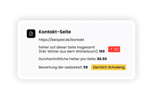 Analysiere Inhalte, Performance und Qualität deiner Website. Finde Broken Links, Rechtschreibfehler, Performance-Bremsen und Verständlichkeitsprobleme – und optimiere Barrierefreiheit, SEO und Nutzererlebnis datenbasiert.